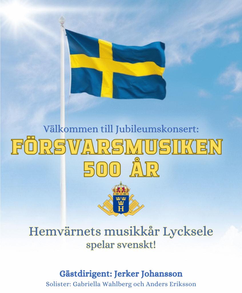 Försvarsmusiken haft en betydande roll inom Försvarsmakten och svenskt musikliv, där 28 musikkårer årligen genomför vaktparader, spelar vid ceremonier och offentliga konserter. Som Lapplands stolta representant bjuder Hemvärnets Musikkår Lycksele in till en konsert där vi spelar svensk musik. Gästdirigenten Jerker Johansson har sin bakgrund som slagverkare och kompositör, samt tidigare dirigent för Flygvapnets musikkår och Göteborg Wind Orchestra, och bidrar till konsertprogrammet med flera av sina egna kompositioner och arrangemang.